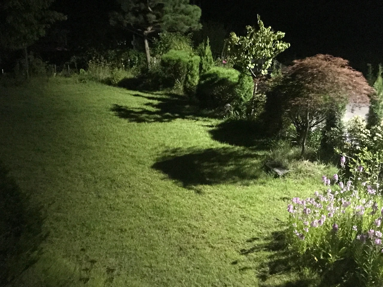 밤에 만난 파란 잔디로 된 뜰