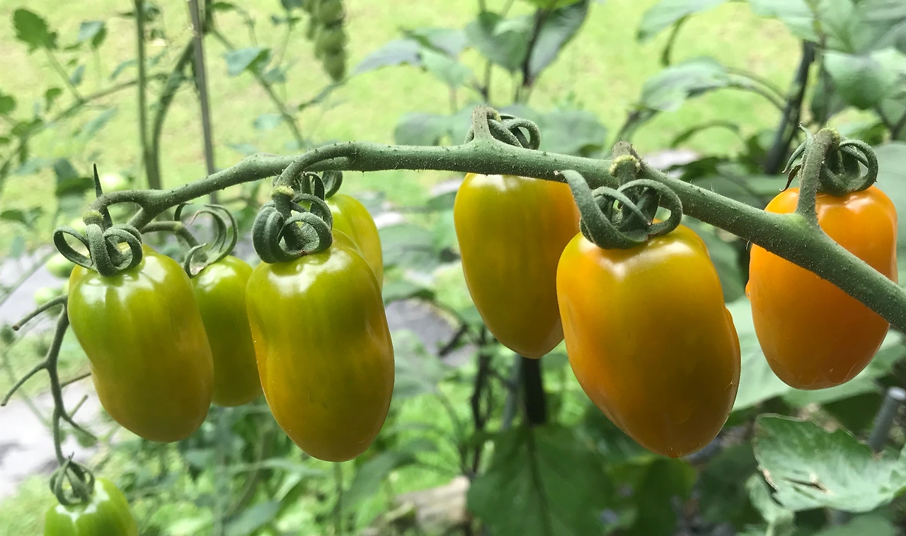 시원한 바람이 한꺼번에 가득 들어온다. 이런 바람을 어디서 맞을 수 있을까? 새벽부터 신이 났다. 시골에 사는 이런 맛을 누가 알 수 있을까? 힘겹지만 살아 본 사람만이 느낄 수 있는 상쾌한 맛이다. 잔디밭을 지나 작은 텃밭을 순시해야 한다. 토마토와 가지가 밤새 얼마나 자랐나 보고 싶어서이다. 10여 포기되는 토마토가 제법 잘 자랐다. 가지도 주렁주렁 달렸다. 올해는 농사를 잘 지은 편으로 이웃들이 부러워한다. 퇴비를 많이 해서 그런지 어른 키보다도 더 큰 토마토, 곳곳에 색색의 토마토가 가득 열렸다. 특히, 주황색을 띠는 방울토마토가 으뜸이다. 크기도 그렇지만 색감이 환상적이다. 자연이 요술을 부린 것이다.