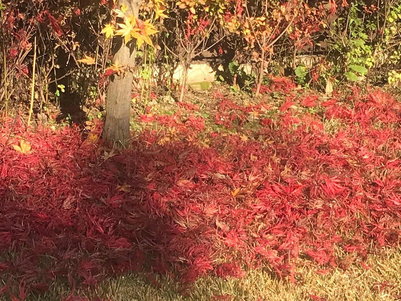 가을비가 추적대는 잔디밭에도 낙엽이 가득하다. 남은 공작단풍과 화살나무잎이 그냥 있지 않았다. 가끔 떨어진 솔잎이 노랗게 물을 들였다. 비바람이 심해 나갈 수가 없는 잔디밭을 하루쯤 두고 봐야겠다. 봄부터 가을까지 집을 빛내 주었던 낙엽이니 하루는 봐주어야겠다는 생각이다. 조금은 서두르는 성격을 비바람이 꾹 눌러주고 있음이 감사하다. 커피 향을 맡으며 거실에 앉아서 바라보는 앞산과 잔디밭은 근사한 도화지가 되었다. 줄기차게 내리는 가을비가 도화지를 수시로 바꾸어 놓는다. 붉고 노란 물감이 순식간에 모였다 흩어진다. 서서히 단풍이 들고 떨어지는 잎사귀가 순식간에 운명이 바뀌었다. 소나무 잎은 아직 건재한 모습이다. 비바람이 찾아왔지만 푸르른 솔잎은 끄떡없이 남아있다. 그래서 소나무인가 보다.