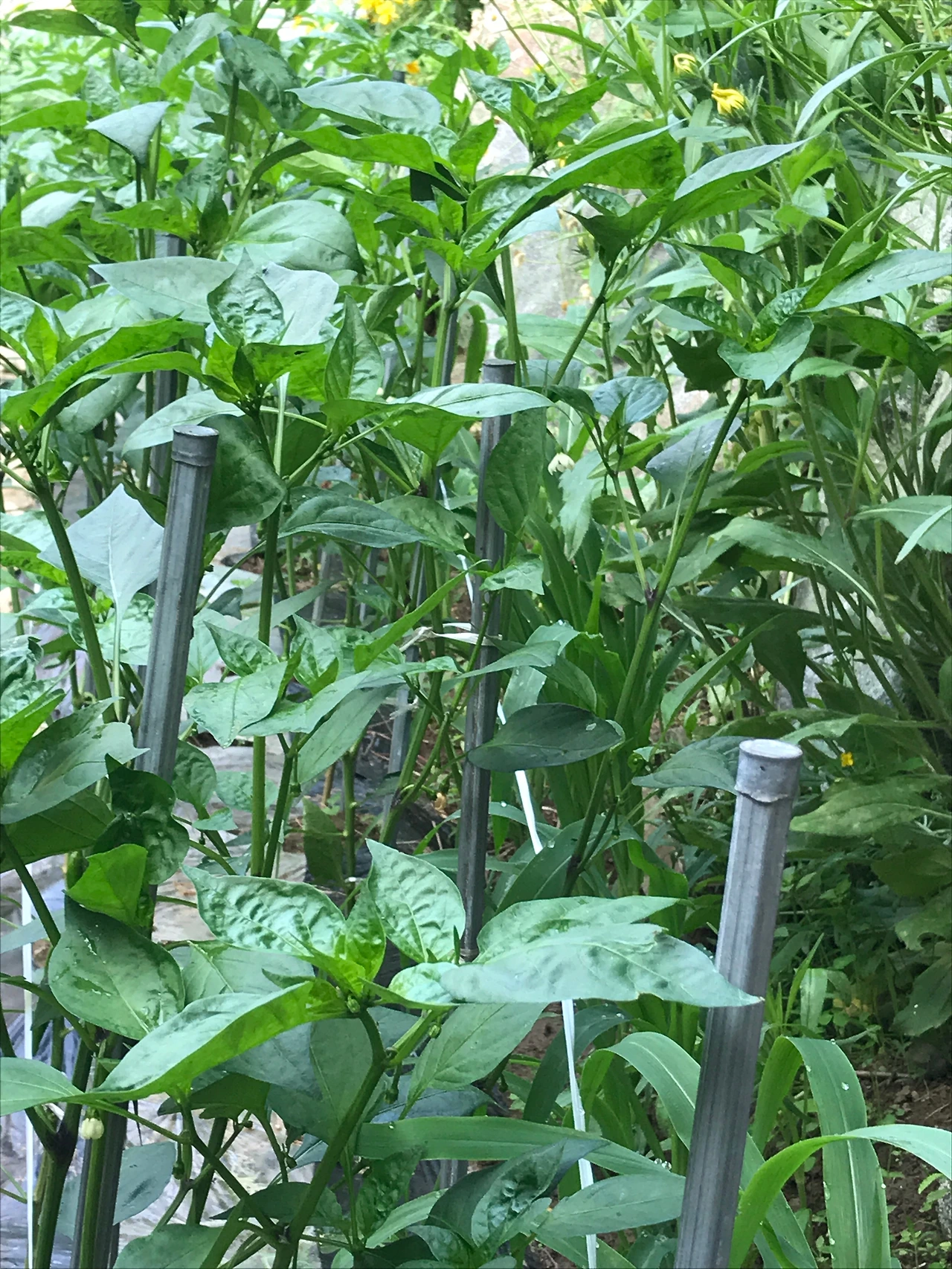 산 밑에 자리한 두 평정도 밭에는 스물한 포기의 고추가 껑충하게 키를 불렸다. 초봄, 모종 상회에서 열 포기의 청양고추와 열 포기의 아삭이 고추모를 달랬더니 한 포기를 덤으로 주어 스물 한 포기가 되었다. 푸름이 가득한 5월에 싱싱한 고추를 먹겠다고 심어놓은 고추는 제법 키를 키웠다. 하얀 꽃이 생글거리기도 하고, 이미 달린 고추는 하루가 다르게 커가고 있어 아침, 저녁으로 들여다보니 조금은 부끄러워한다. 뒤쪽으로는 이웃에서 얻은 옥수수를 먹어보겠다고 심었지만 그늘이 되어서인지 키만 삐쭉하게 불렸고, 남은 구석에 심은 부추는 싱싱한 모습으로 나풀거리며 위세가 대단하다.
