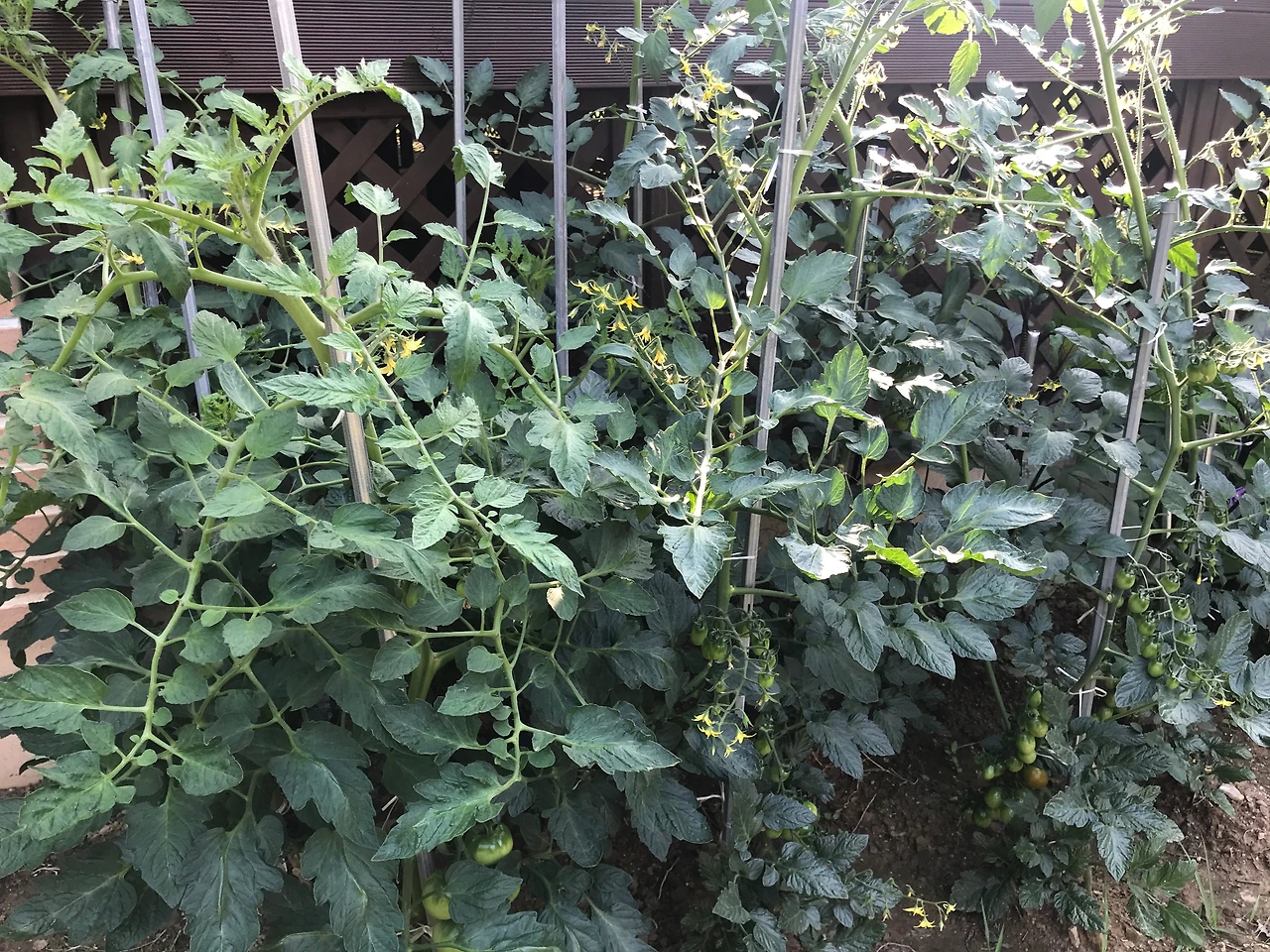 집 쪽으로 붙어 있는 두 평 반 정도 거대한(?) 밭에도 다양한 식물들이 살고 있다. 일찌감치 아기모를 심었던 대파는 어른 손가락 굵기까지 자라나 이웃을 놀라게 했으며, 뜬금없이 파밭에 자리한 한 포기의 호박은 싱싱한 대파들에게 눈치 거리가 되고 있다. 하지만 아랑곳하지 않고 널따란 잎을 키워 위세가 대단하니 그냥 볼 수밖에 없을 테고, 그 옆에 심어 놓은 열 포기의 토마토는 푸름으로 가득하다. 다섯 포기의 방울토마토와 일반 토마토 다섯 포기로 총 열 포기인데, 제법 키를 키우고 토마토를 매달고 있어 보기가 좋다. 다섯 포기의 가지도 이제는 살 길을 찾은 모양새이다. 처음 모종을 심었을 때는 이름 모를 벌레들이 잎을 괴롭힌 까닭에 크지 못했지만 어느새 가지는 세를 불리고 튼튼한 몸으로 되살아나 꽃을 피우고 자그마한 보랏빛 가지를 달고 있다.