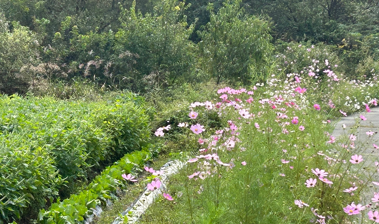 한 여름 장마철같이 변덕스러운 날씨다. 앞 산 언덕에 자리한 얕은 벌판에도 얕은 가을이 찾아왔다. 넓은 면적을 차지하고 있는 고마니풀이 붉은 꽃을 피웠다. 드문드문 코스모스도 붉은 꽃을 피웠고, 이른 봄부터 꽃을 자랑하던 금계국도 얼굴을 보여준다. 가을비가 그치고 가을이 익어가면 빨간 고추잠자리가 하늘을 날 것이다. 여기에 가을이 듬뿍 내려오면 황금물결이 넘실거리고, 곳곳엔 가을 흔적이 그득하리라. 여기에 가끔 나타나는 고라니가 동참하고, 산새들마저 하늘을 날면 가을 축제가 가득하리라.