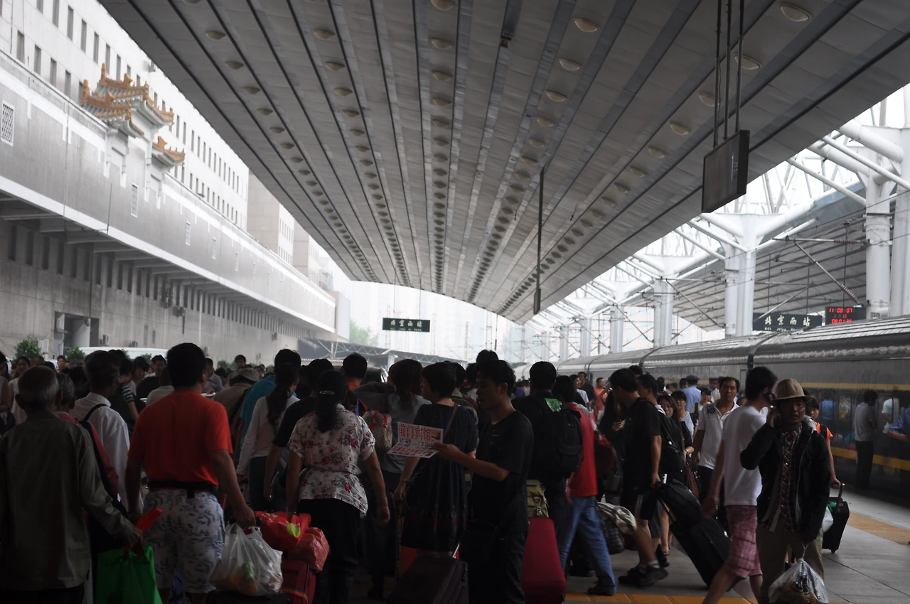 북경 서역 , 짐을 챙겨 사람들에 밀려 나간 북경 서역은 엄청나게 큰 것에 놀랐다기보다는 끈끈한 습기가 가득한 북경의 공기 때문이다. 단박에 등줄기에서 땀이 흐르고 기분이 불쾌해 어떻게 할 수가 없었다. 수많은 사람들이 밀려나가고 밀려오는데 우리는 북경에서 나온 가이드를 만나야 했지만 그는 보이지 않았다. 역에서 사람들이 빠져나가 사람들의 수가 점점 줄어들기에 그들의 뒤를 따라나서려는 순간 , 어디선가 피켓을 든 사람이 나타나 돌아보니 우리가 찾는 가이드였다.