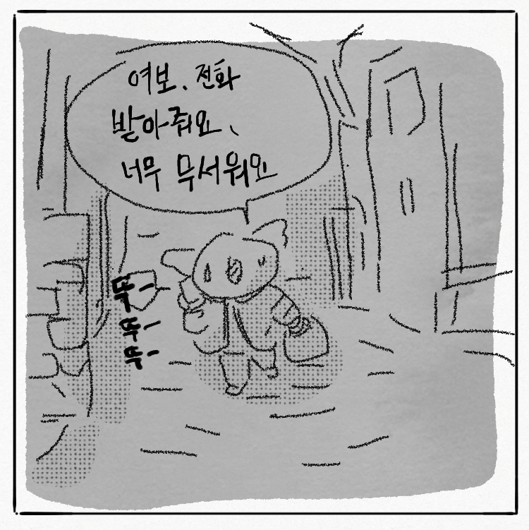 "여보, 어떡해! 애가 나오려고 해. 그런데, 그런데 너무 무섭고 추워."