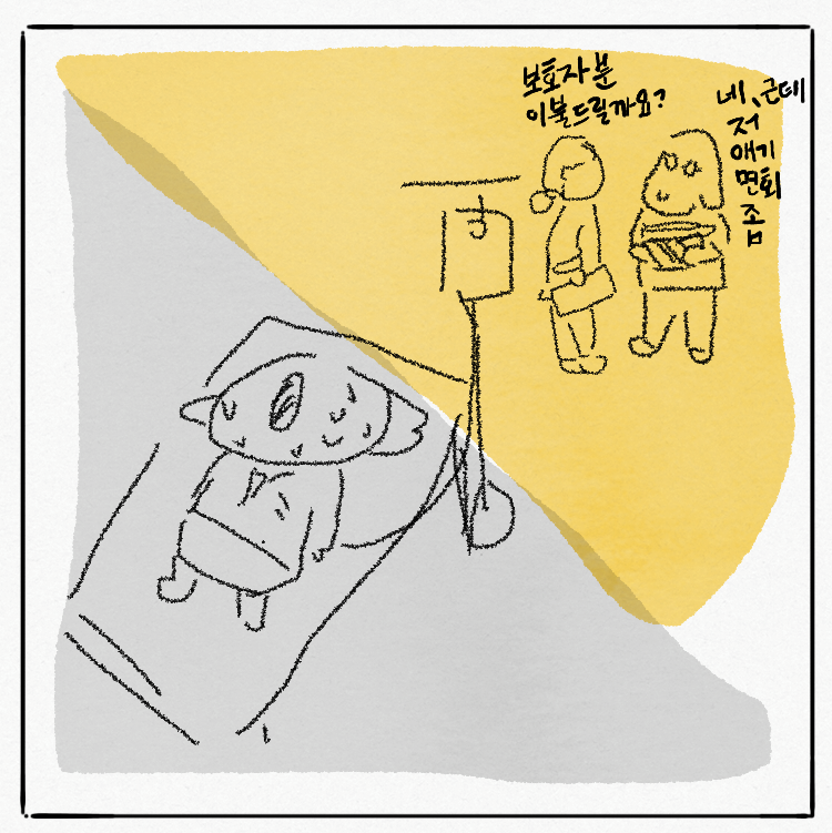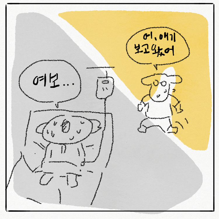 허리 아래로 계속 피가 흐르고 있었다. 남편은 침상 패드를 교체해주고 화장실에 갈 수 있도록 부축했다. 그러나 나는 다시 어지럽다는 말만 중얼거리고 숨을 쉴 수 없을 것 같은 갑갑함에 상체를 흔들다가 화장실 앞에 무너졌다. 남편은 의식을 확인하는 듯 다급한 어조로 계속 말을 걸어주고, 내 아랫도리를 가려주려고 안간힘을 썼다. 간호사 선생님들이 가세한 뒤에 나는 침대로 돌아왔다.