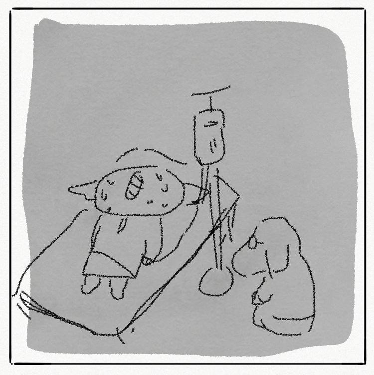 거동할 수 없는 상태가 되어, 여러 의료진의 도움으로 병실에 도착했지만, 아무것도 들리지 않고 보이지 않았다. 세상은 온통 하얀색이었고, 간호사들이 남편을 찾는 물음이 희미하게 들렸다가 나도 모르게 어지러워요, 어지러워요라고 반복하고 있는 건 알게 되었다.