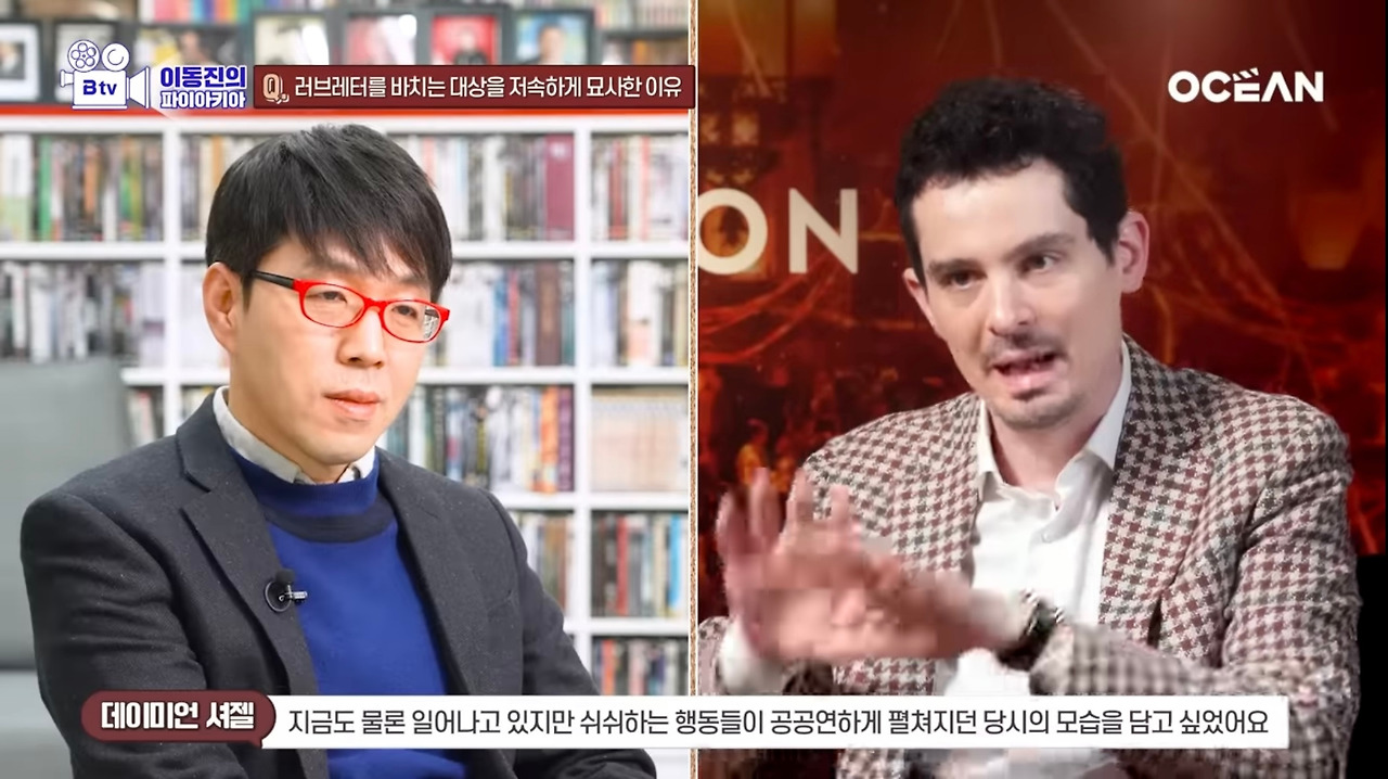 영화 초반에 구미를 한껏 당기게 하는 화려한 미장센과 반복적인 리듬 베이스에 아주 빠른 템포 음악으로 눈과 귀를 호강시켜 주는데, 정말이지 혼이 나갈 정도로 정신없는 화면들로 거의 30분 이상 보여준다. 더불어, 마약과 향락에 취해 서로 뒤엉키고 난장판인 군집 파티 모습을 적나라하게 묘사한 부분에 대해 데이미언 셔젤(Damien Chazelle) 감독은 한 인터뷰에서 고삐가 풀린 채 혼란스럽고 난잡한 모습들도 할리우드 역사의 일부분이기에 가감 없이 보여주고 싶었다고 한다.