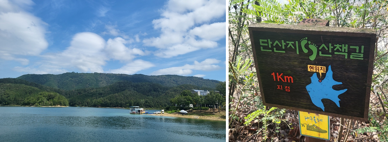 여느 때처럼 무선 이어폰을 귀에 꽃아 라디오를 들으며 봉무공원의 만보 산책길을 걸었다. 봉무공원엔 저수지인 단산지(丹山池)를 한 바퀴 도는 만보 산책길과 약수터와 전망대로 향하는 여러 갈래의 산길이 있는데, 나는 주로 단산지 만보 산책길을 걷는다. 만보 산책길은 가볍게 '걷기 운동'을 하고 싶어 하는 사람들이 가벼운 옷차림으로 담소를 곁들일 수 있는 전혀 무리되지 않는 코스로 한 바퀴 도는데 40~50분 정도 걸린다.