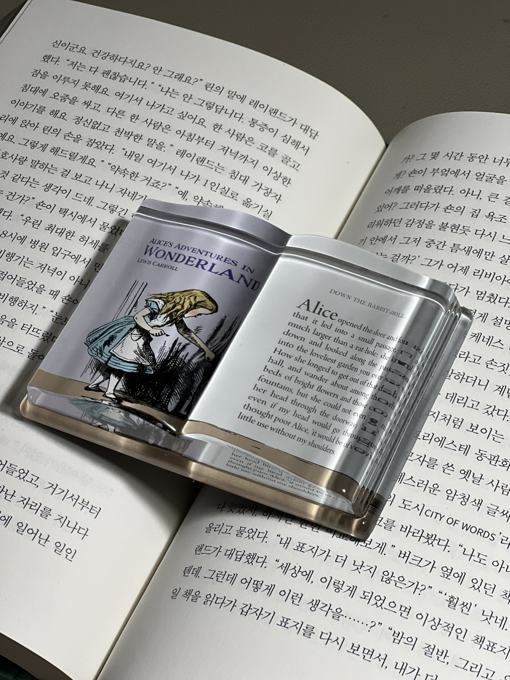 문진이 하나 있으면 좋겠다고 생각했다. 노트에 글을 쓰거나 책을 펼쳐 읽을 때 페이지가 넘어가지 않도록 지그시 눌러주는 크고 아름다운 문진. 때마침 비슷한 시기에 이곳저곳에서 문진을 얻을 수 있었다. 메리 올리버의 시집을 사고 사은품으로 받은 문진, 시집을 포함해 책을 오만 원 이상 구입해 받은 문진, 권여선 작가의 신간 사은품 문진. 유리로 만들어진 문진들은 단단하고 묵직하며 시구나 소설 문장을 품고 있다.