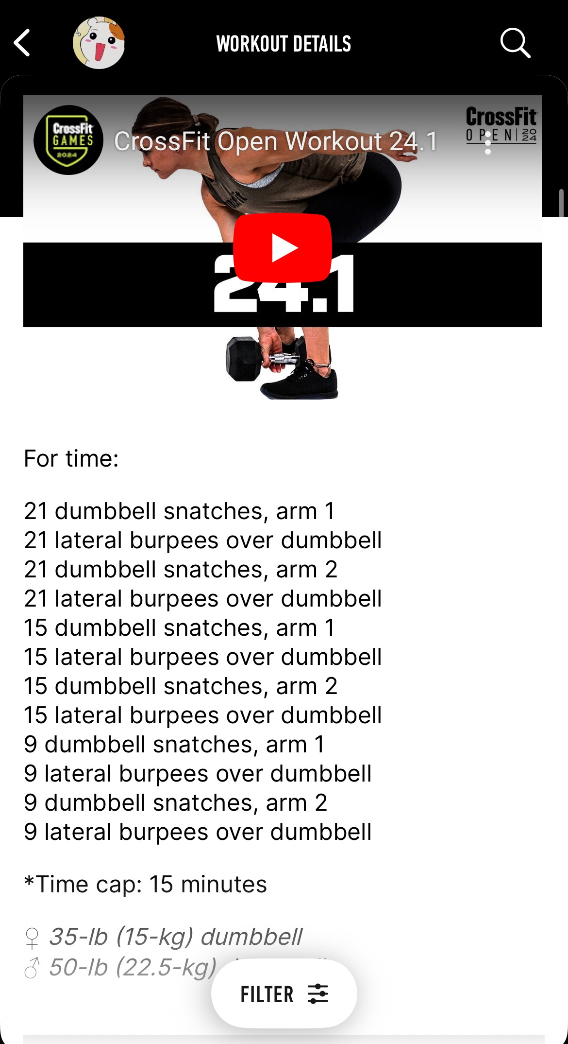 전 세계 크로스피터들의 축제 오픈 첫주차 와드는 두 가지 동작으로 구성되었다. 바닥 위 덤벨을 머리 위로 들어올리는 덤벨 스내치dumbbell snatch, 바닥에 엎드렸다 일어나는 버피burpee, 두 개만 하면 된다.