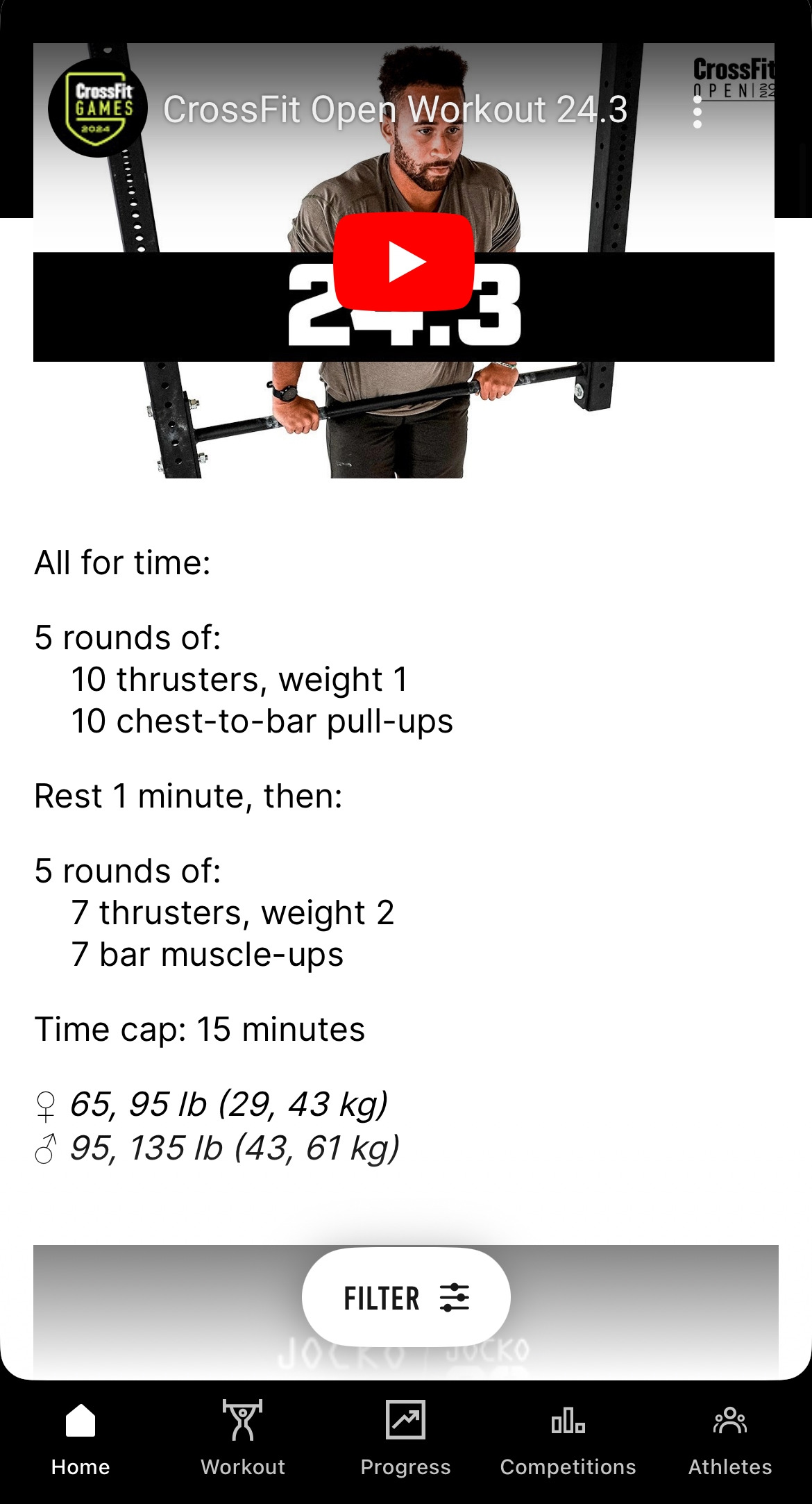 그렇게 올해 오픈 마지막 와드를 확인하고 스러스터가 나와서 기뻤다. 스러스터야말로 크로스핏의 근본이다! 바로 아래 체스트 투 바chest to bar동작과 바 머슬업muscleup동작을 보고 슬펐다. 내가 가장 싫어하는 동작이 철봉에서 수행하는 것들이다. 풀업(턱걸이), 체투바(가슴까지 턱걸이), 머슬업(바 위로 올라가기), 다 싫다. 가장 좋아하는 동작과 가장 극혐하는 동작을 함께 해야 하는 와드가 나와 버렸다.