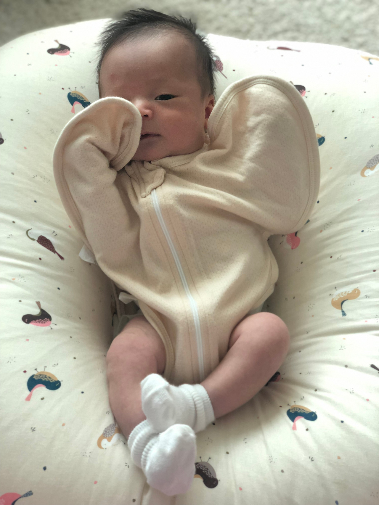 2. 성인 남성 팔뚝만 한 크기의 아기는 모든 것이 작다. 폐가 작아 숨소리가 빠르고 격하며 위장이 작고 일자형이라 1-2시간마다 한 번씩 배고프다고 운다. 둥지 안 아기새처럼 수시로 입을 벌린다.