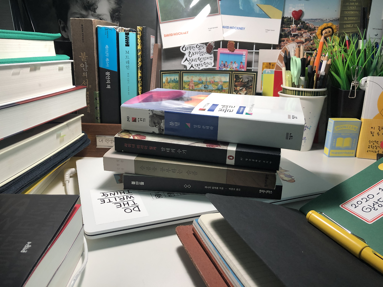 한 책만 진득하니 오래 읽지 않는다, 아니 못한다. 내 다리는 두 개지만 독서가인 나는 문어발처럼 한 번에 수 권을 쌓아두고 이 책 읽다 저 책 폈다 다른 책에 눈을 돌린다. 책상에 읽는 중인 책이 수북이 쌓여 있다.