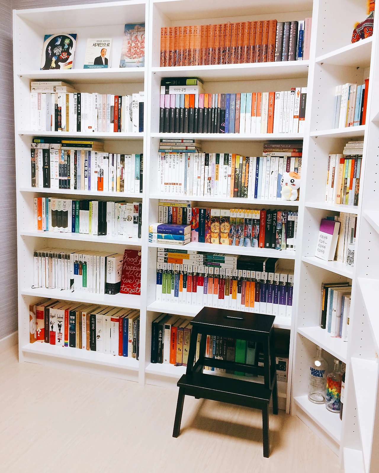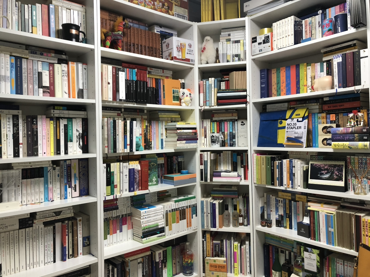 이렇게 모인 나의 '잡동사니'들로 나는 무엇을 창조하려 했을까? 절반 이상이 소설에, 관심 가는 대로 이 분야 저 영역 조금씩 사 모은 이 서재는 무엇을 말하고 있는가? 나의 취향은 어느 정도 확립이 된 상태지만 정확한 한 문장으로 정의 내리기는 아직 어렵다. 소설과 소설을 둘러싼 책들이 모여 뭔가를 쑥덕거리는데 내 서툰 귀는 그들의 말을 다 알아듣지 못한다.