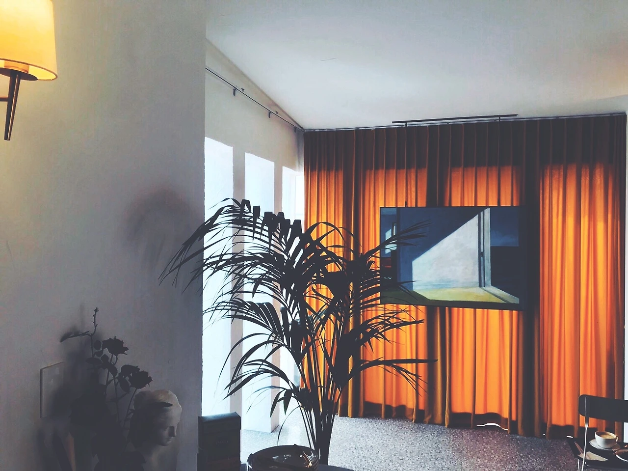 [b. 토크라피의 목적과 함께 그 안에 담겨있는 색감 또한 이 목적을 지향한다고 생각합니다. 은은한 조명과 자연 채광을 비추는 커튼 (Curtain)의 디테일함은 이를 드러냅니다.]