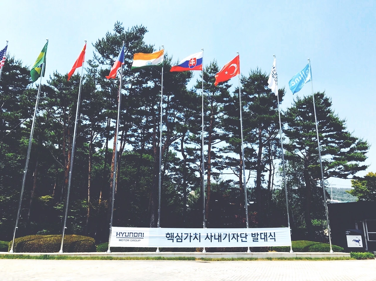 [b. 흔히 '국뽕'에 취한다고 할까요? 워크숍 (Workshop)에 걸린 플래카드 (Placard)를 보면서 사진을 찍지 않을 수 없었습니다. 물론 자랑을 위한 사진이 되었지만, 지금 이렇게 보니 "내가 구성원으로서 뭔가 새로운 일을 할 수 있구나"라는 마음이 더 컸던 것 같습니다.]