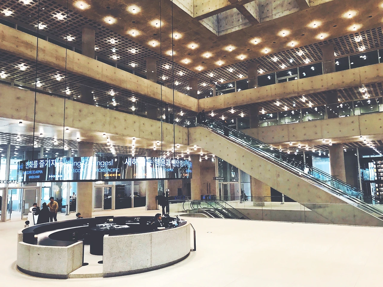 [b. 내부는 정말 인상 깊었다. 흔히 설계를 하는 것에는 경제적인 타당성이 들어가는데, 이렇게 정중앙을 다 비워두고 그 공간을 방문객을 위해 오롯이 쓴다는 점이 좋았다. 그리고 안내 데스크가 이렇게 미래적인 모습이라니.]