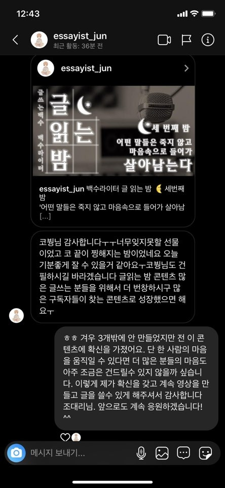 뭔가 또 되게 재수 없어 보이는 말을 한 것 같아서 실제로 [글 읽는 밤]을 통해 자신의 글이 낭독된 작가
