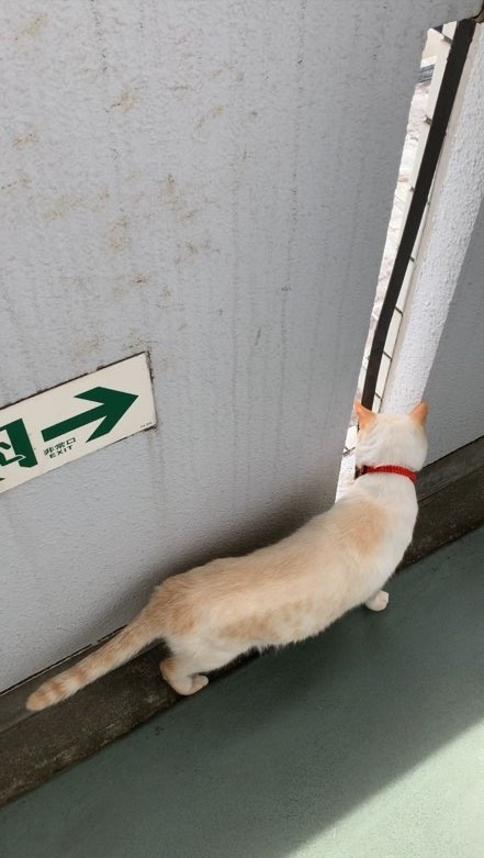 그나마 다행인 것은 우리 맨션의 비상계단문은 평소 굳게 닫혀있다. 문 자체도 육중한 철문이다. 나비의 솜뭉치 같은 냥냥 펀치로는 절대 열리지 않을 묵직한 문이다.