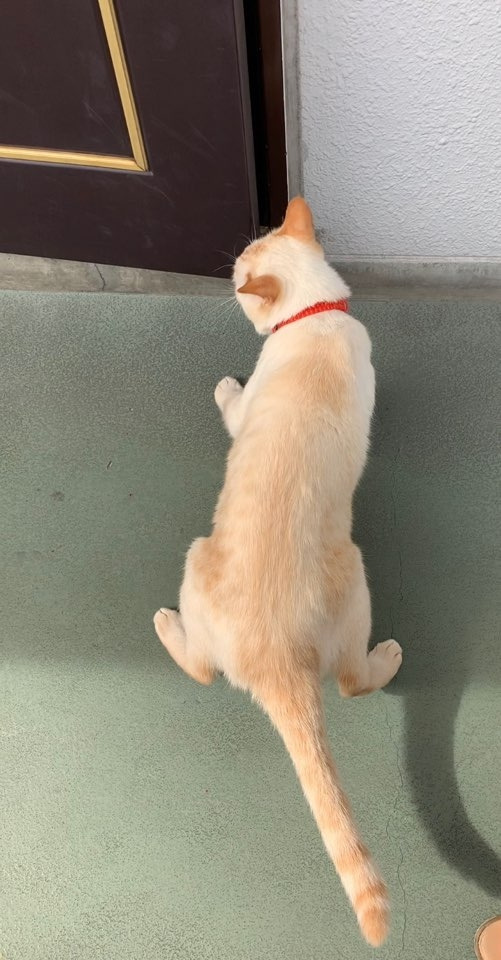 일반적인 한국의 아파트와는 달리 일본의 맨션(=한국의 아파트 개념)은 거의 한 건물뿐인 곳이 많다. (아닌 곳도 물론 있음) 그렇기에 내가 사는 맨션도 딱 한 개 동으로 이루어진 건물이었다. 현관에 보안카드를 대어야 문이 열리는 고급 맨션까지는 아니지만 우리 맨션에 들어올 수 있는 입구는 딱 한 군데뿐이다. 그리고 내가 사는 곳은 1층도 2층도 아닌, 무려 7층이었다. 그러니 길 고양이는 아닐 것 같았다.(내가 사는 동네에서는 아직까지 길 고양이를 한 번도 본 적이 없기도 하다) 나비의 목에 예쁘게 매어져 있는 빨간색 목줄만 봐도 나비가 주인 없는 길고양이는 아니라는 확신이 들었다.