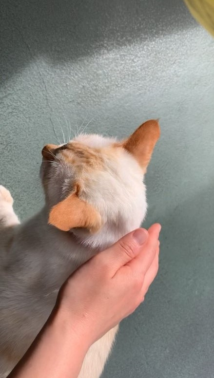 이런 나의 갈등을 아는지 모르는지, 고양이는 처음 보는 내게도 살갑게 다가와 내 다리에 제 몸을 비볐다. 또다시 "냥!" 울며 나에게 자꾸 인사를 했다. 결국 나는 쭈그려 앉아 고양이의 머리 위로 손을 올렸다.