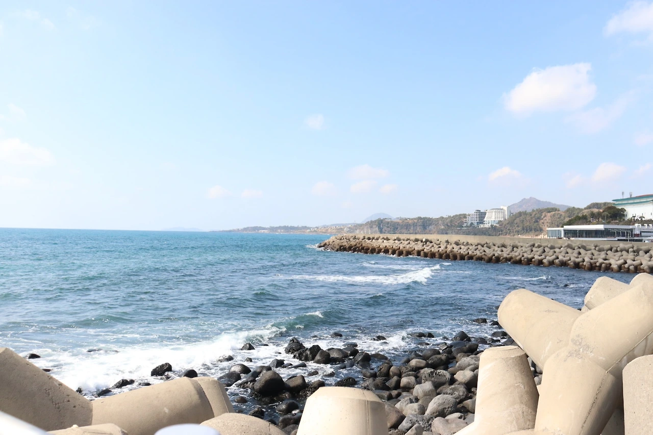 친구보다 먼저 가서 타샤를 바닷가 산책을 했다.