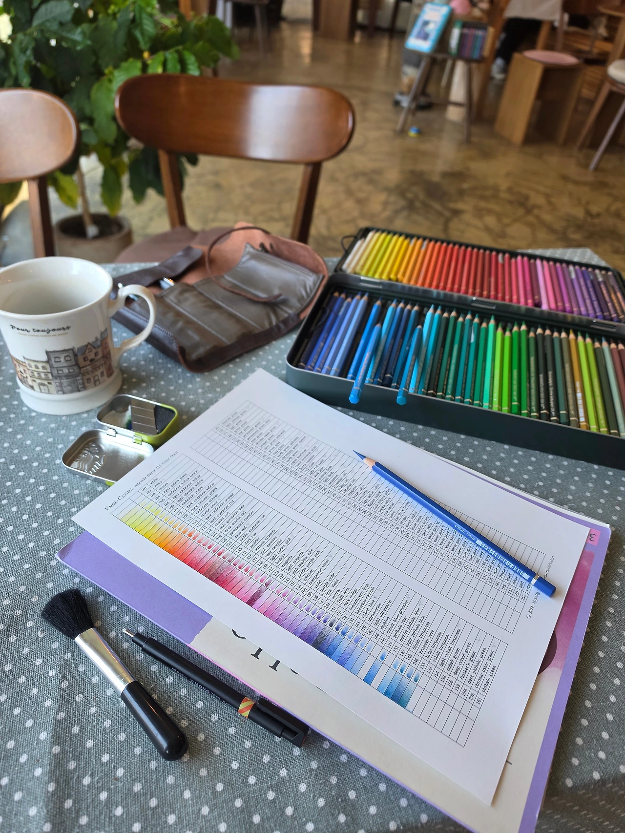 예전 회사 퇴사 때 받았던 색연필 세트에 부족한 색을 추가하고 나만의 색 팔레트를 채우고 있다.