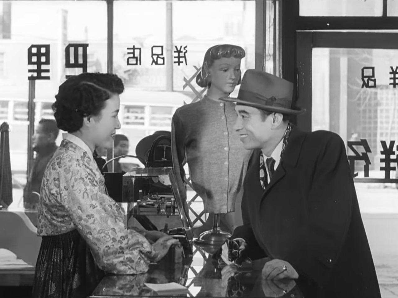 특히 인상 깊었던 장면은 양품점에서 일하게 된 선영과 사장의 남편이 모종의 말다툼을 벌이는 장면이다. 사장의 남편은 애인에게 줄 것이라며 화장품을 사면서 화장품을 좋아하는 여성들을 비하한다. 처음에는 ”화장품의 노예“라는 말로 시작하여, 고작 화장품을 쓴다는 이유로 ”누구를 위해서든 아름답게 꾸며야 하는 현대여성일수록 점점 매춘부적 성격이 농후해간다“라는 말을 쏟아내기까지 한다. 이때 선영의 대사가 흥미롭다. 먼저 그녀는 ”화장이란 여성의 생활과 마음을 아름답게 하는 절대적인 조건이지요“라는 말로 자기주장을 분명히 드러낸다. 나아가 ”그건 선생님의 너무 비문화적인 관찰인 탓이에요“라며 사장의 남편을 아슬아슬하게 깎아내리며 비판할 수 있는 용기가 좋았다. 이런 대화는 지금의 창작물들에도 등장하기 어려운 솔직한 대화다. 게다가 이 순간의 긴장감이 기점이 된 것인지 어느새 두 사람은 가끔 데이트를 하는 사이로 발전하는데, 이 지점도 흥미로웠다. ‘날 이렇게 대한 여자는 네가 처음이야’로 시작되는 러브스토리는 유구한 전통인가 보다.