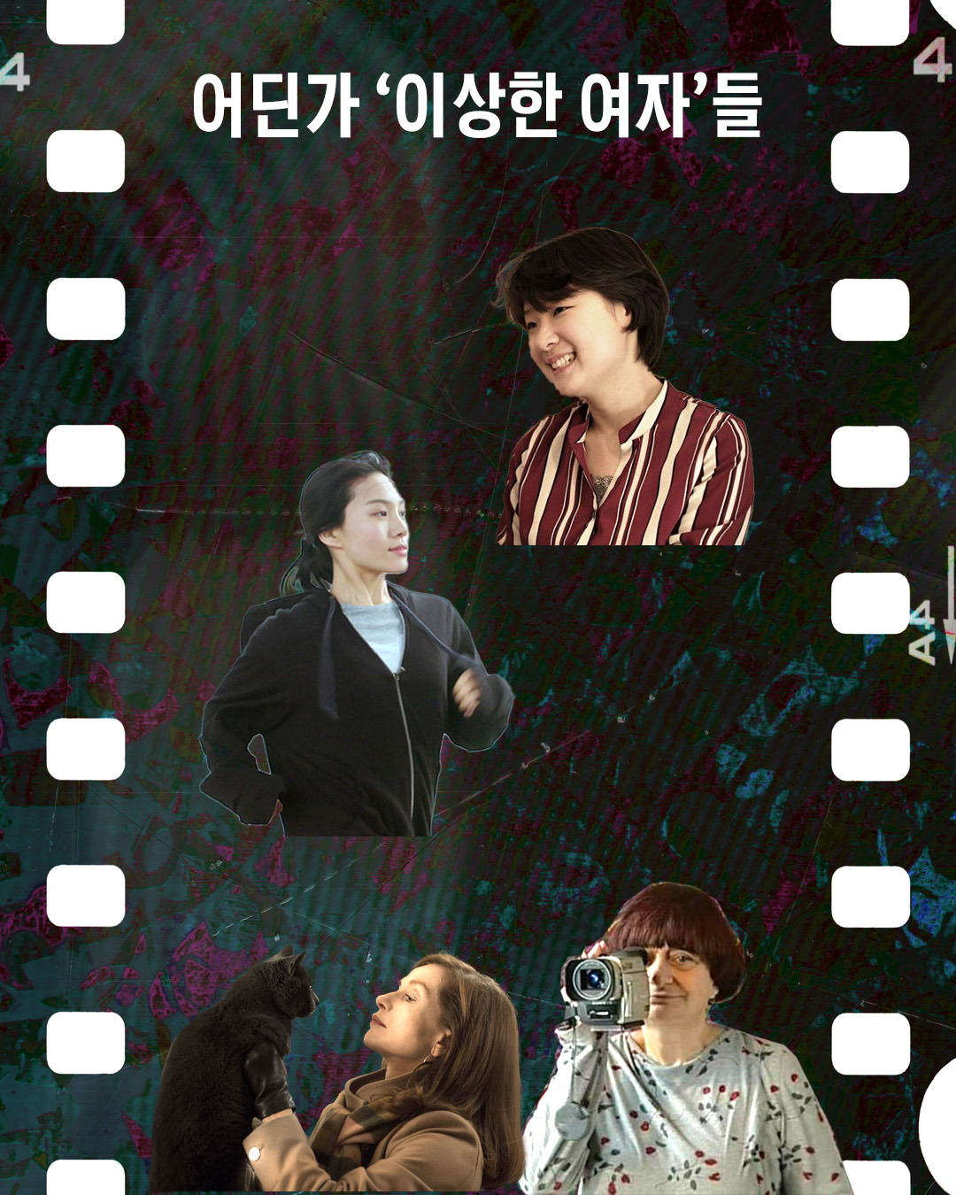 이후 내가 재밌다고 생각해 온 ‘이상한 여자’들이 나왔던 영화들을 반추해 보았다. 이경미 월드의 <미쓰 홍당무>와 <비밀은 없다> 같은 작품에 나오는 ‘이상한 여자’가 좋았다. 폴 버호벤의 작품 <엘르>도 떠올랐다. 성폭력을 당한 여자가 그것에 쾌감을 느끼며, 과거 자신의 상처를 톺아보는 작품. 노년의 남성 감독이 이런 작품을 만들어냈다는 것이 놀라웠다. 정가영의 <밤치기>도 빼놓을 수 없는 작품이다. 정가영은 언제나 ‘한 남자의 사랑을 갈구하는 여자’를 감독이자 배우로서 표현한다. 심지어 그 여자는 구차하고 별로다. 이 작품은 편협한 ‘여성 영화’의 개념에 포섭될 수 없다. 그러나 어떤 여성에게는 그런 욕망도 여전히 실존한다. 남성에게 사랑 받고 싶은 여자는 페미니스트가 아닌가? 몇 년간 이런 질문들을 끊임없이 해왔다. ‘여성 영화’ 이전에 페미니즘이라는 이론을 들고 와봐도 그건 아니지 않나. 결국 여자들도 자기답게 살 수 있게 만들자는 것이 페미니즘 아니던가.