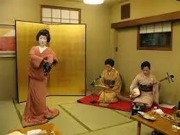 전후에 그나마 조금 남아있었던 손님들 마저 없어지자, 세련된 놀이 자체도 자연스럽게 자취를 감추었죠. 축제 뒤에 훌쩍 혼자 와서 올 수 있는 게이샤나 호칸을 다 불러 달라는 손님들은 완전히 없어져 버렸습니다.