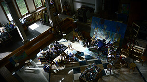 홀로 그림을 그리던 화가가 손을 멈추고 창밖을 잠시 응시하다, 다시 캠퍼스 앞에 앉는다