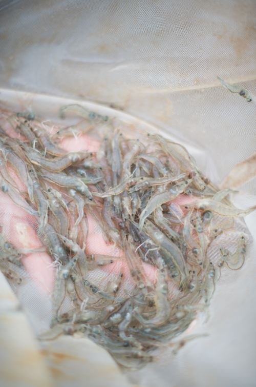 탱크 안을 들여다봤지만 새우가 눈에 보이진 않았다. 천 대표가 그물로 물을 훑어낸 후에야 팔딱이는 작은 새우가 딸려 올라왔다. 이제 입식한지 45일 되는 새우들이다. 탱크 1개 당 1만~1만5000마리 정도의 새우를 키우고 있다. 계산해보면 평당 1000~1500마리를 넣은 것이다. 보통 새우 양식장이 평당 200마리 정도를 키우는 것과 비교할 때 면적 대비 효율이 높다. 천 대표는 "좁은 땅에서 밀도 높게 키우는 게 가능한 양식법을 도입했기 때문"이라고 설명했다.