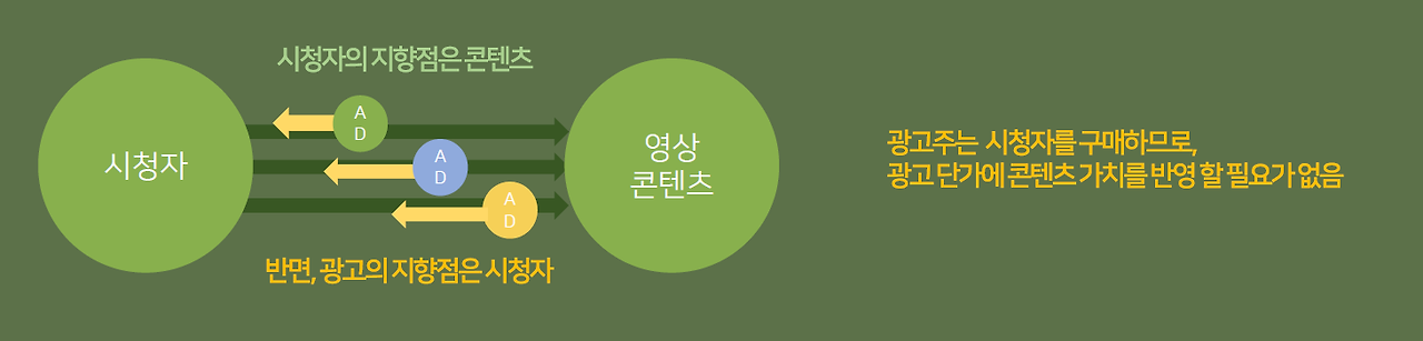기존 동영상 광고는 이른바 시청자를 판매/구매하는 구조였습니다. 좀 더 부연하면 광고를 오래 봐주는 시청자죠. 합리적입니다. 광고주가 원하는 목표 타겟에게만 광고를 노출시킬 수 있고, 설령 그 타깃이 광고를 다 보지 않는다면 과금되지 않으므로 효율적인 광고 집행이 가능합니다.