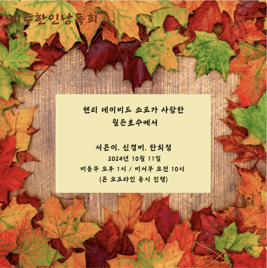 월든호수 야외에서 온, 오프라인으로 진행됩니다.