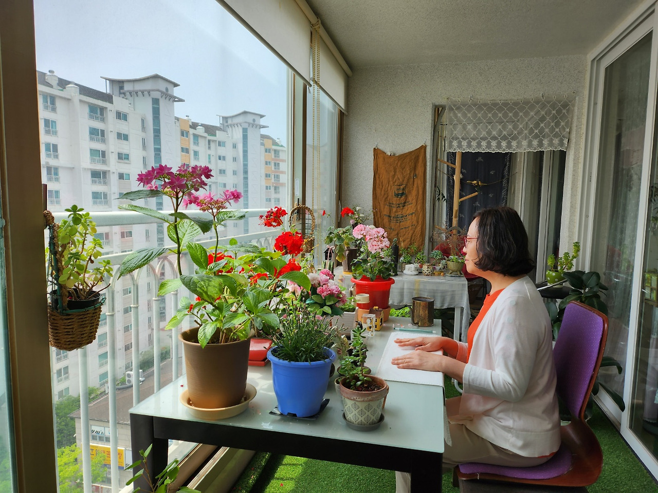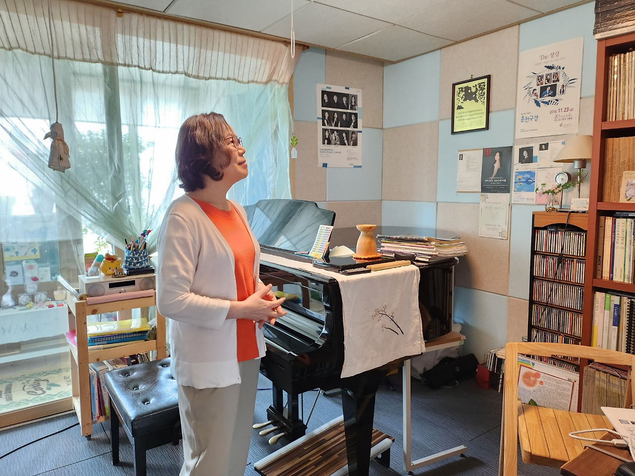 가는 도중 정민샘 집에 잠깐 들렀다. 집안에 꽃이 가득하여 마치 '정민화원(클라라화원)'에 들러 꽃구경을 하는 듯했다. 인스타에서 보았던 꽃 테이블에 앉아보니 꽃들이 내게 '안녕'하고 안부를 묻는 것 같았다. 세월의 흔적을 느낄 수 있는 레슨실도 구경했다. 집안 곳곳이 정민샘의 향기가 묻어 나오는 따뜻하고 밝은 집이다.