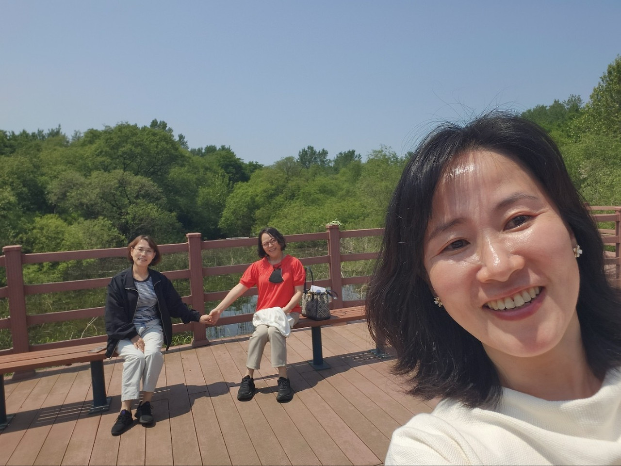 서울로 돌아가면 정민샘과 미경샘에게 이번주말에는 오디오클립 콜라낭독에 올라갈 녹음을 꼭 마쳐야 한다고 말했다. 사실 동생집의 녹음환경도 신경이 쓰이고 목도 쉬어서 부담스러웠는데, 순간 두 선생님은 나의 과제를 야외에서 해결하자고 제안했다. 미경샘은 나의 낭독을 녹음하기 위해 바로 옆에서 힘들게 셀폰을 들고 있었고, 정민샘은 셀폰으로 녹화를 했다. 순식간에 일어난 일이었다. 새소리, 바람소리가 들어간 자연스러운 녹음이었다. 낭독 전 인사말도 즉흥적으로 마쳤다. 정민샘에게 편집도 넘겼다. 나는 마음 편안히 다음 주엔 친구들과 남쪽으로 여행을 떠날 수 있게 되었다.(감사합니다. 샘들~^^. 정민샘 이 빚을 어찌 다 갚으리오? ㅋ)