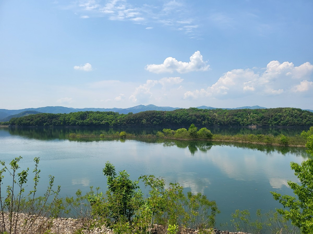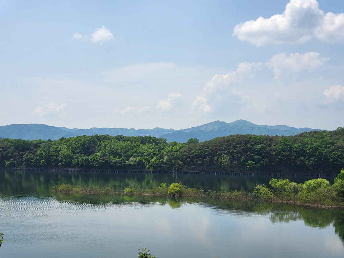먹자마자 또 보여줄 것이 있다고 출발하는 정민샘! 정말 춘천시에서 상 줘야 할 사람이다. 상중도에서 바라본 서면은 너무도 아름다워 차에서 내리지 않을 수 없었다. 헤어질 시간이 다 되어갔지만, 시간을 쪼개어 애니메이션 박물관도 방문하고 카페 '갤러리 툰'에서 커피까지 마시며 사진 한 장 더!