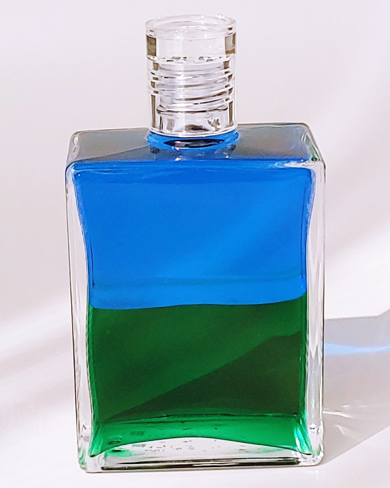 [블루와 그린이 만들어내는 터콰이즈는 창조성을 나타낸다. 창조성은 우리 내면에 있는 것이 표출되어 나올 수 있는 해방구 역할을 한다. 3번 바틀은 가슴 차크라 혹은 제4 차크라와 연결된다. 가슴은 창조성이 세상에 표현되는 방법을 찾을 수 있는 곳이다. 가슴에 공간이 생기면 그 안에서 창조성을 찾을 수 있다. (...) 만약 우리가 우리 내면 깊은 곳에 공간을 만들 수 있다면, 우리는 좀 더 의식적으로 평화를 실현하고 우리의 창조성을 발현할 수 있는 기회를 가지게 될 것이다.] - Mike Booth with Carl McKnight, <The Aura-Soma Sourcebook : Color Therapy for the Soul 번역>