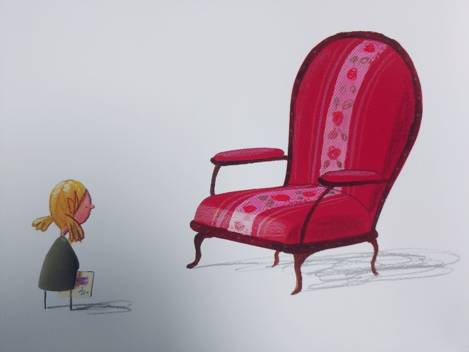빈 의자는 소녀처럼 소중한 이의 죽음일 수도 있고, 어떤 이에게 받은 상처나 트라우마일 수도 있다. 빈 의자에 비해 소녀가 너무나 작고 왜소해 보이듯이 우리도 상처 앞에서 아주 작고 초라했을지 모른다.