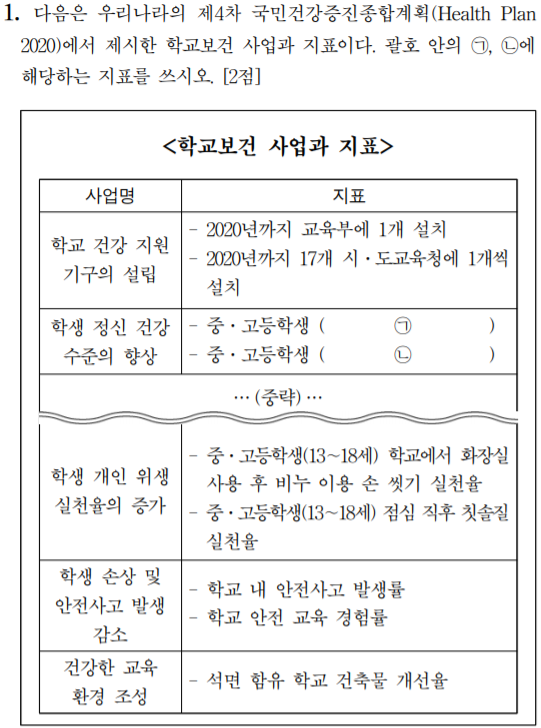 보건교사가 될 사람들에게 묻기에 적절한 문제라는 생각이 들었다. 학교에 들어서면 아이들과 정말 어울릴까 싶은 '스트레스'와 '자살'이라는 단어가 아이들을 졸졸 따라다니는 걸 보게 될 테니 말이다.