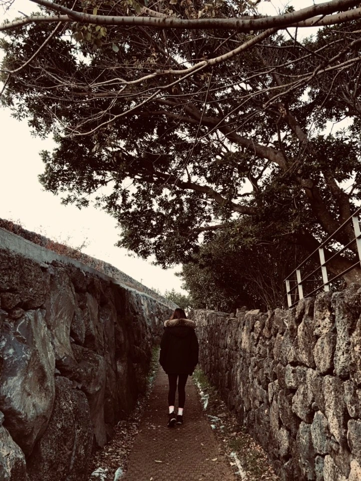 첫 경험은 어리숙하지만 곧 환희와 놀라움이 뒤섞인 달뜸이다. 모두가 처음인 이곳에서, 믿을 것이라고는 휴대전화 지도 어플 하나다. 아주 못 쓰지는 않을 머리인지 슬슬 나뭇가지에 묶인 올레길 안내 띠가 눈에 익는다. 자연스레 지도를 들여다보는 시간이 줄어들자 제법 모험가가 된 듯도 싶다. 길고 긴 걸음 동안 세 명의 올레꾼을 보았고, 이내 놓치길 반복이다. 전혀 알 길 없는 이들이지만, 예상치 못한 외진 길에서는 10년 지기 친구의 얼굴이다. 나도 모르는 사이 그들에게 내적 친밀감을 쌓으며 걸음을 재촉한다.