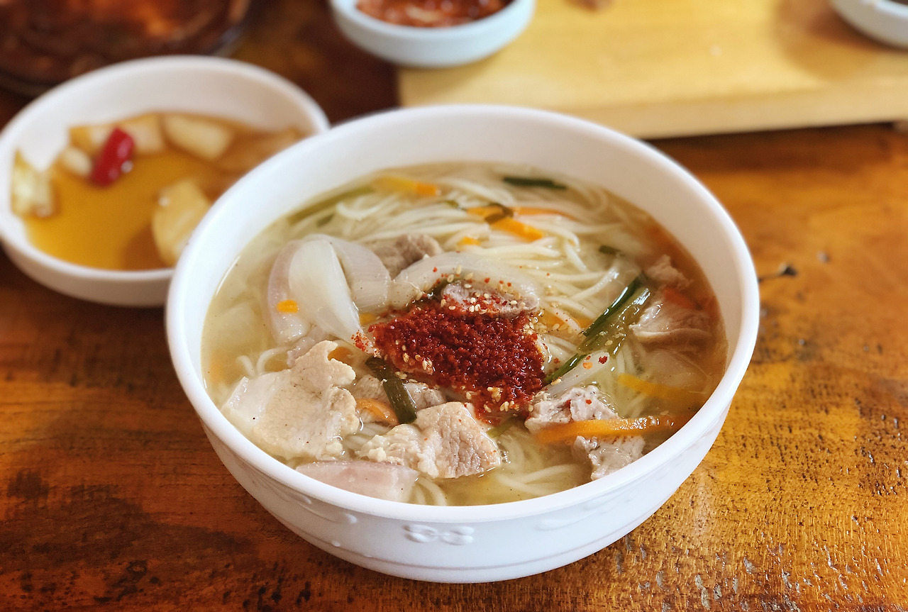 나는 사삭스러우면서 다소 예민하다. 무던해지려 노력해도 향만큼은 그게 잘 안 된다. 그래서 고기를 좋아하지만 맛있게 먹는 건 쉽게 하지 못한다. 거짓말을 보태지 않고 이곳도 고기에 설탕을 뿌렸다. 그렇지 않고서야 어떻게 냄새도, 식감도, 거기에 맛까지 완벽할 수가 있겠는가. 잡내라고는 찾으려 해도 찾을 수 없고 식감은 소고기가 우습다. 맛은 어떠냐고 묻는다면 사진을 다시 보길 바란다. 눈치챘을지 모르겠지만 국수가 나오기 전에 돔베고기는 거의 사라지고 말았다. 고기국수는 육수가 깔끔하다. 느끼하거나 걸쭉하지 않다. 다만 양이 상당해 면을 좋아하지 않는다면 다 먹기가 버거울 느낌이다. 물에 빠진 고기를 좋아하지 않는 엄마도 이건 맛있게 드실 것 같다.