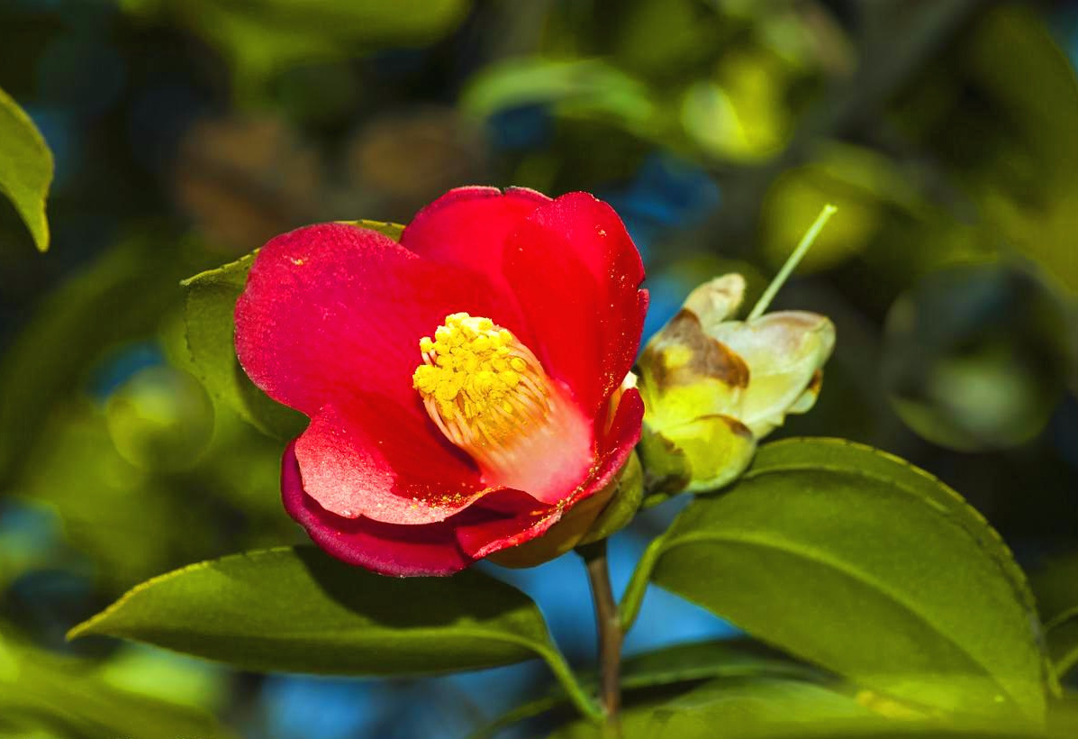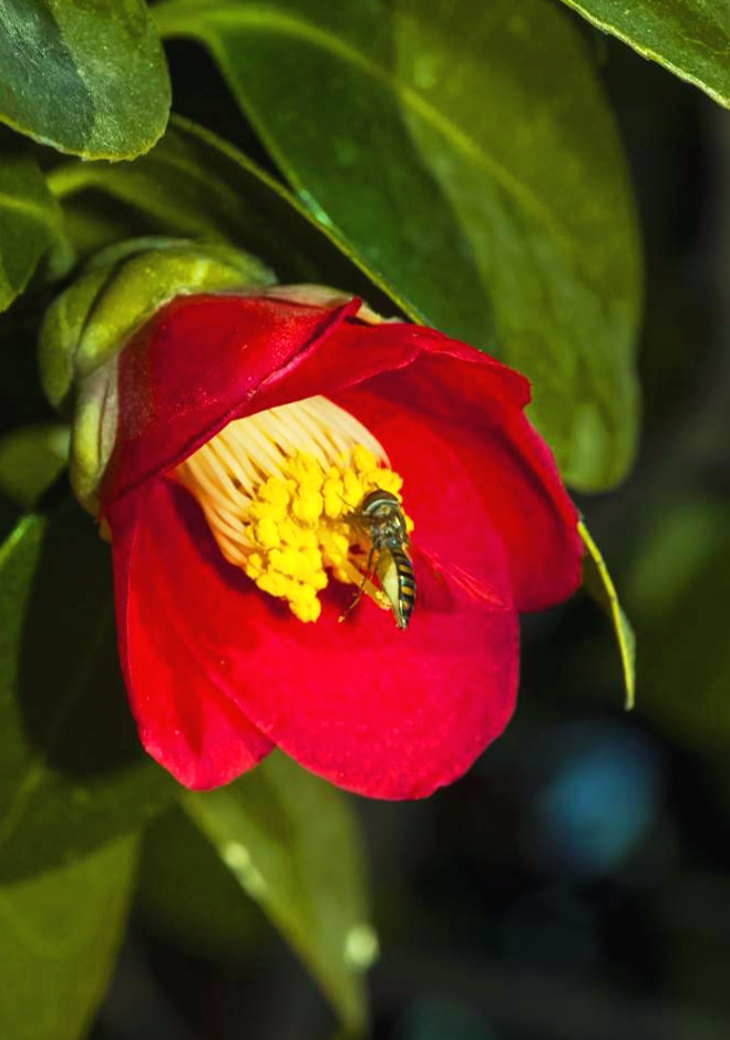 동백꽃은 꿀이 많아 꿀벌이 자주 찾는 꽃입니다. 한번 머리를 박으면 나올 줄 모릅니다. 새들도 꿀을 먹으러 찾아듭니다. 꽃을 따서 밑을 입으로 빨면 꿀이 혀끝을 달콤하게 적셔 준답니다. 그렇다고 너무 많이 따먹지는 마세요.