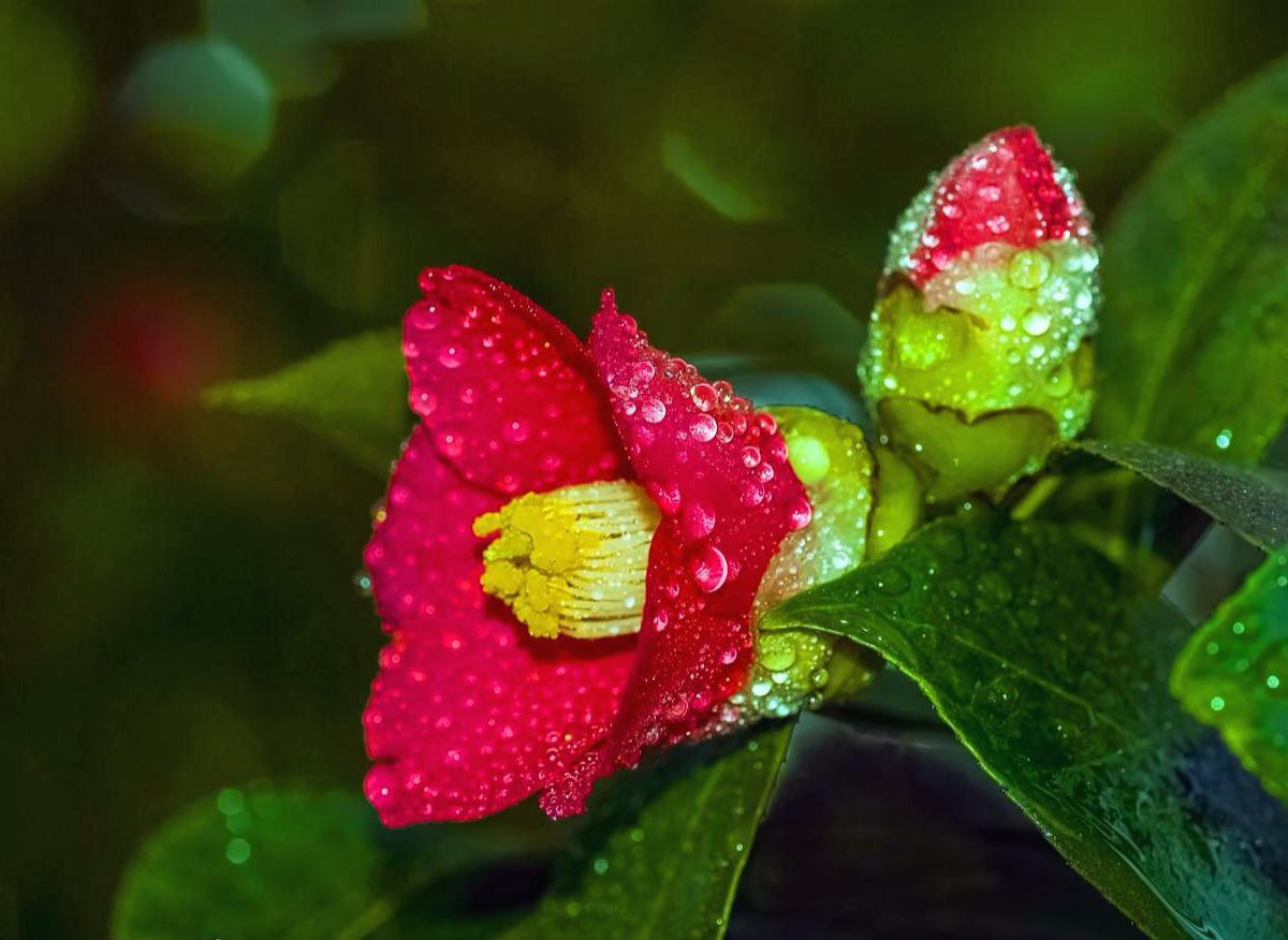 꽃에 방울이 맺혀 또 다른 느낌을 줍니다.