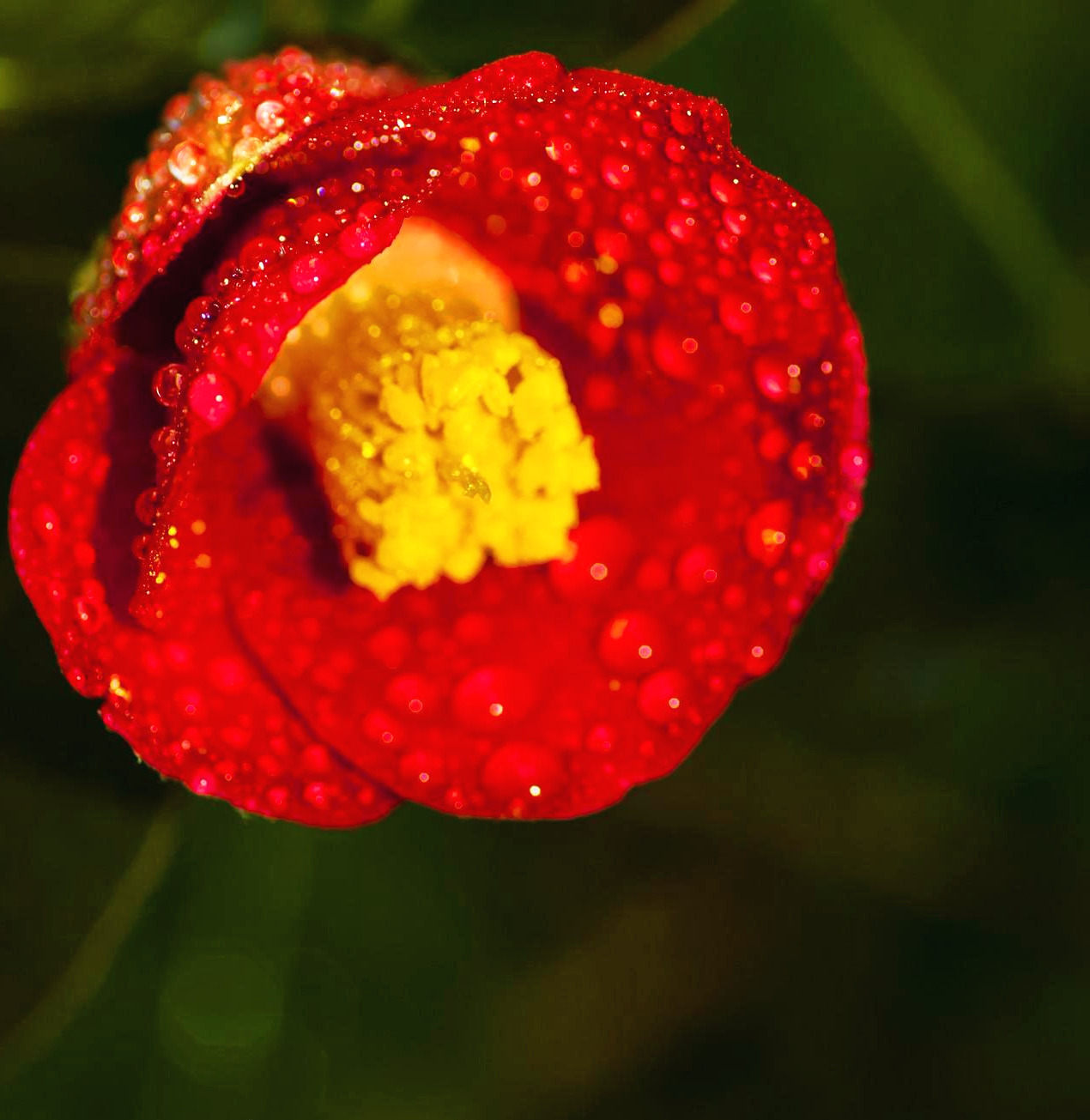 검붉은 꽃 속에 노란 꽃술이 수줍게 숨었는데