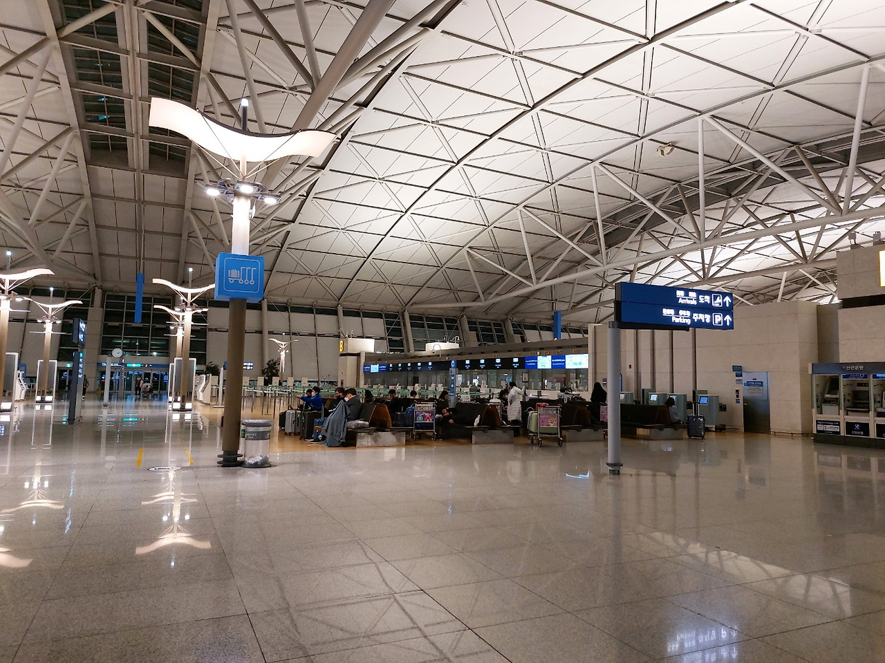 인천 공항에 도착해서 짐을 찾고 나니 밤 12시가 넘은 시간이었다. 이미 지하철도 다 끊겼고, 집에 갈 수 있는 방법이 없었다. 이스탄불 공항에서 대기 중에 검색해서 알아본 결과, 집으로 가는 리무진 첫차는 새벽 5시 30분. 근처 호텔에 묶을까도 생각해 봤으나 5시간도 안 되는 시간을 머무르고 오기에 숙박비와 오가는 택시비를 생각하니 효율적이지 않았다. 인천 공항에 있는 캡슐 호텔을 이용할까 했으나 당일 예약시간도 이미 지나서 묶을 수 없었다. 할 수 없이 새벽까지 공항에서 노숙을 하기로 결정하고, 조용하고 안전하게 쉴만한 장소를 물색했다.
