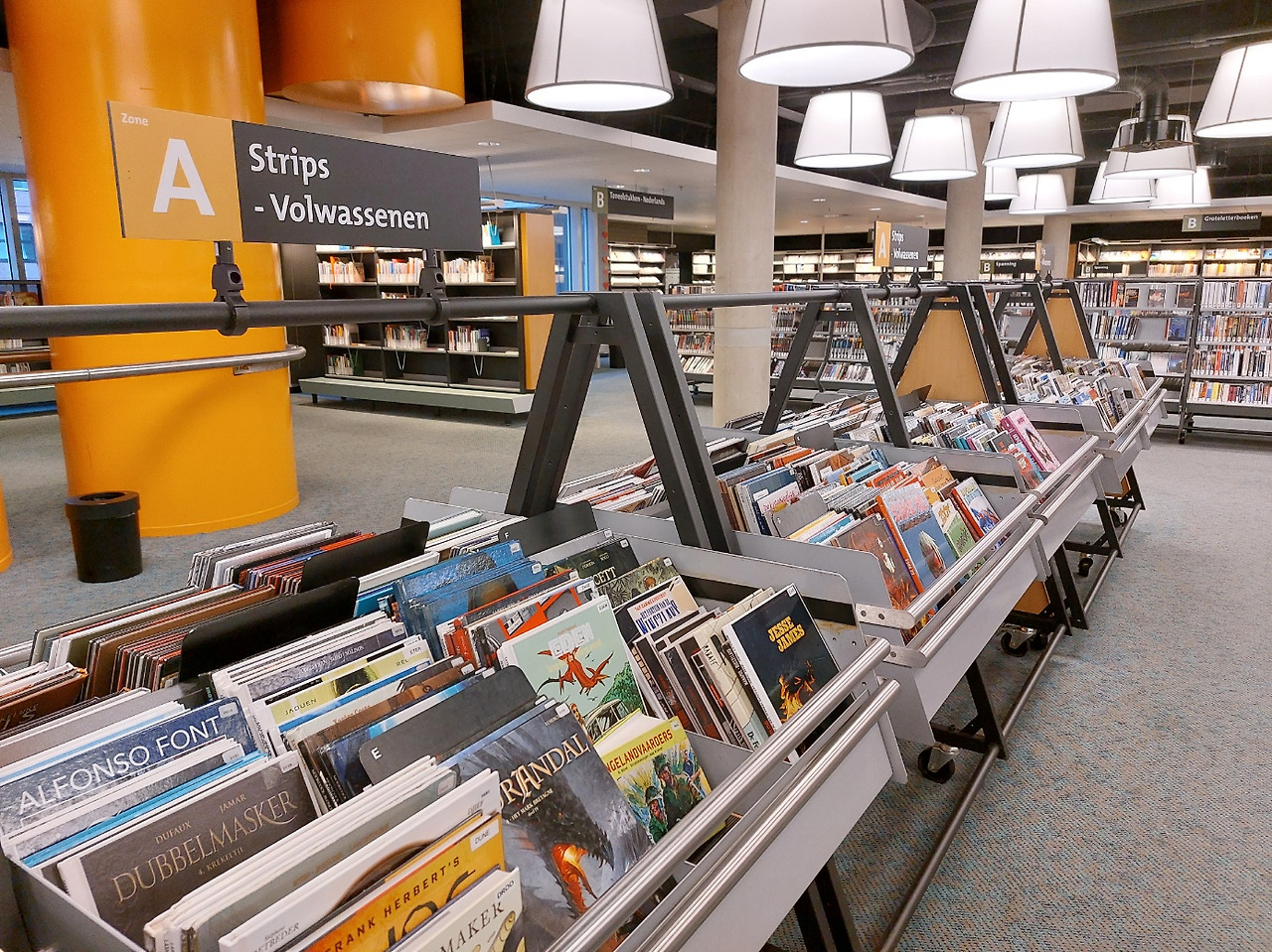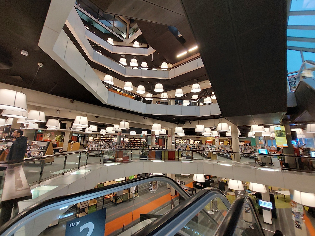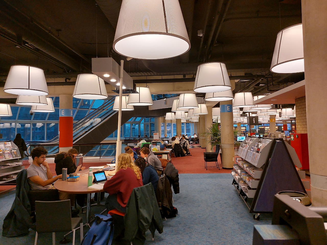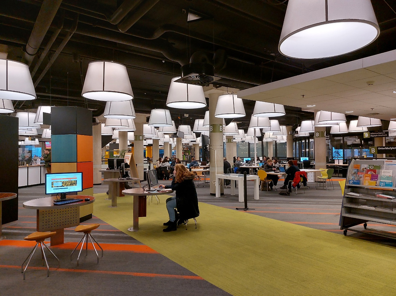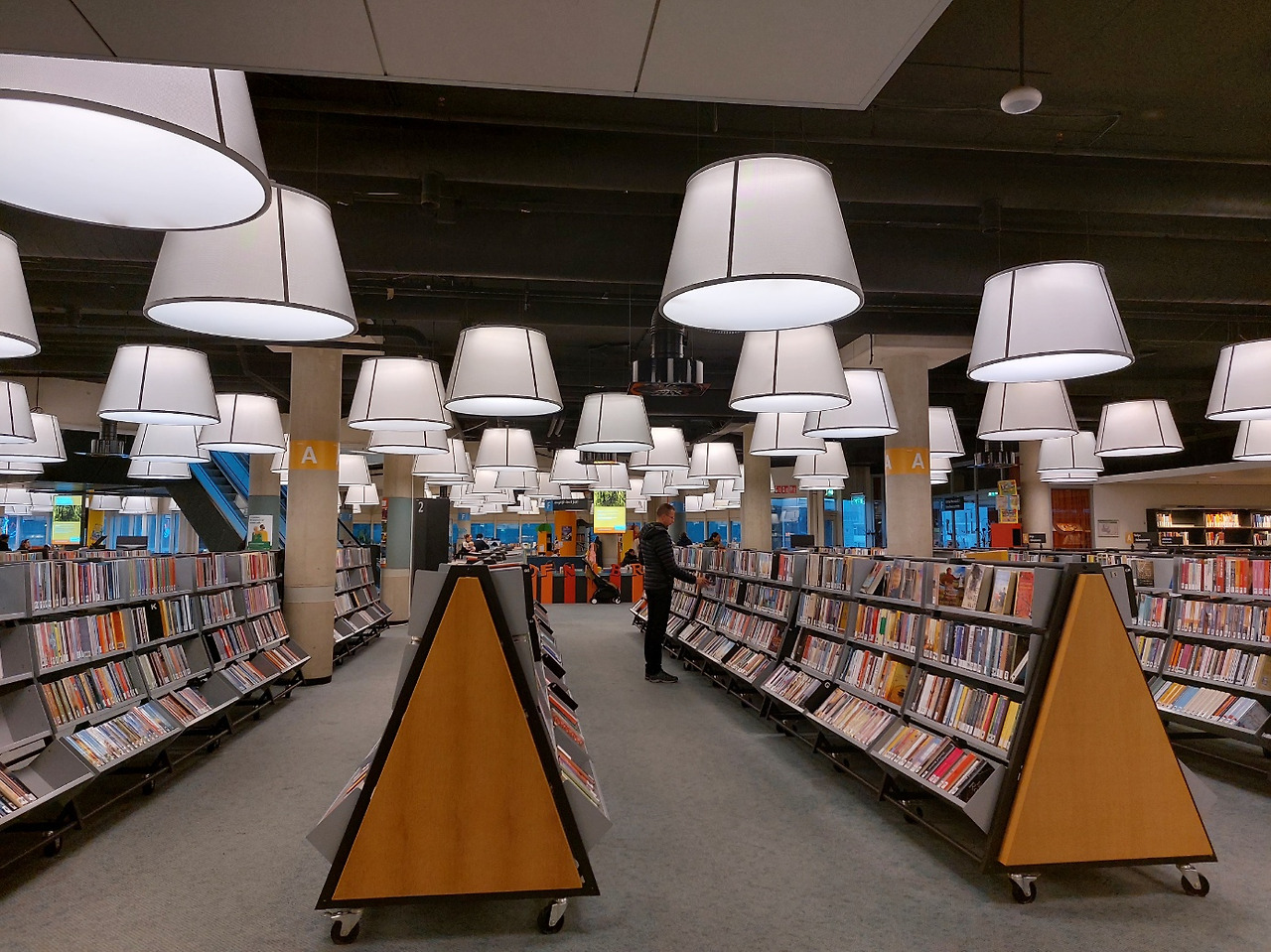 네덜란드에서 가장 인상적인 곳이 어디였는지 묻는다면, 단연코 로테르담의 공립도서관을 말할 것이다. 건물 외관에 노란색의 파이프가 독특하게 있어 외관을 봤을 때 도서관이라고 전혀 생각하지 못했다. 하지만 건물 안에 들어선 순간, 정말 황홀할 정도로 멋진 공간 연출에 흠뻑 반해버렸다. 보름달이 걸려있는 듯 밝고 둥근 수많은 전등과 서가와 테이블 등을 비롯하여 다양한 학습 공간을 층마다 독창적이면서도 아름답게 꾸며 놓았다.
