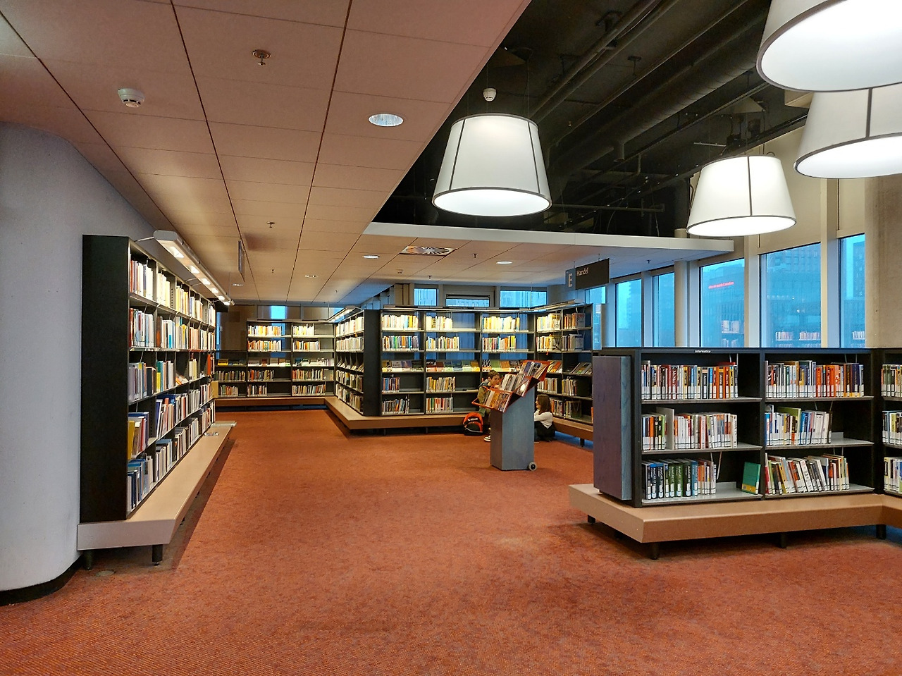 특히 섹션별로 잘 구분해 둔 낮은 높이의 서가가 눈에 띄었다. 우리나라 도서관의 서가 형태는 대부분 자료실 양쪽으로 천장 가까이 닿을 만큼 높은 책장이 일렬로 쭉 놓여있다. 책장 사이의 거리도 비좁아서 다른 사람과 같이 서 있게 되면 누군가는 센스 있게 자리를 비켜 주어야만 하고, 책장이 높아서 위칸의 책을 확인하거나 꺼내기에도 불편함이 많다. 하지만, 이곳의 서가는 배치된 형태도 다양하고, 높지 않은 책장까지 사용자들의 편의를 얼마나 고려했는지 알 수 있었다.