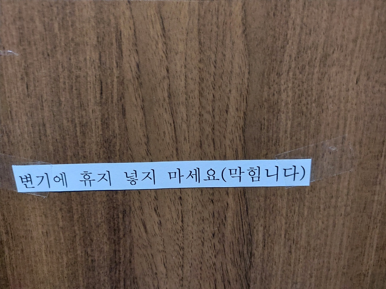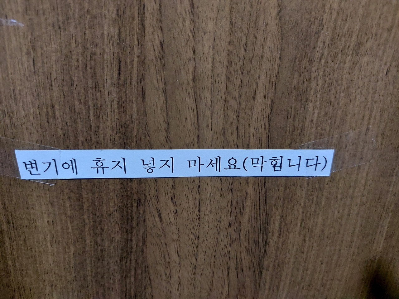 - 변기에 휴지 넣지 마세요. 막힘니다.