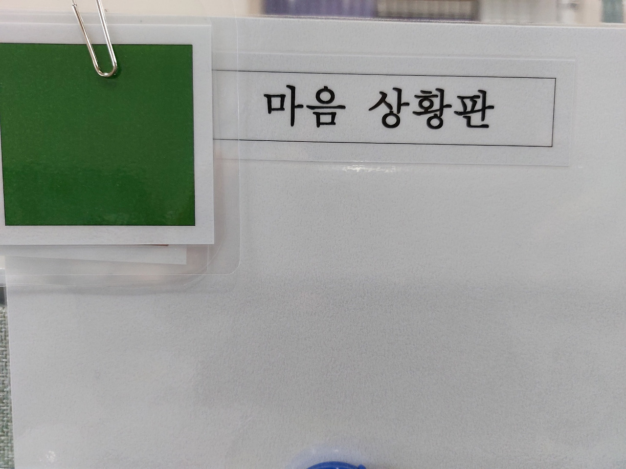 남을 탓할 게 아니었다. 나역시 부장의 상황을 헤아리지 못해 불편하게 만들었을 수 있겠구나 싶어 마음이 무거웠다. 그래서 생각 끝에 두 분한테 "마음 상황판"을 제안했다. 부장님도 내심 좋았는지 반색하는 표정이 살짝 드러나 보였다.음악 선생님도 별다르게 생각하지는 않으셨다. 쇠뿔도 단김에 빼는 법. 바쁜 날이었지만 마음 상황판과 마음 신호등을 급히 만들고, 컬러 프린터가 있는 상담실에 가서 출력하고, 도서실에 가서 코팅까지 해 왔다. 손이 다치지 않게 뾰족한 모서리 부분까지 둥글게 오려서 나누어 드렸다.